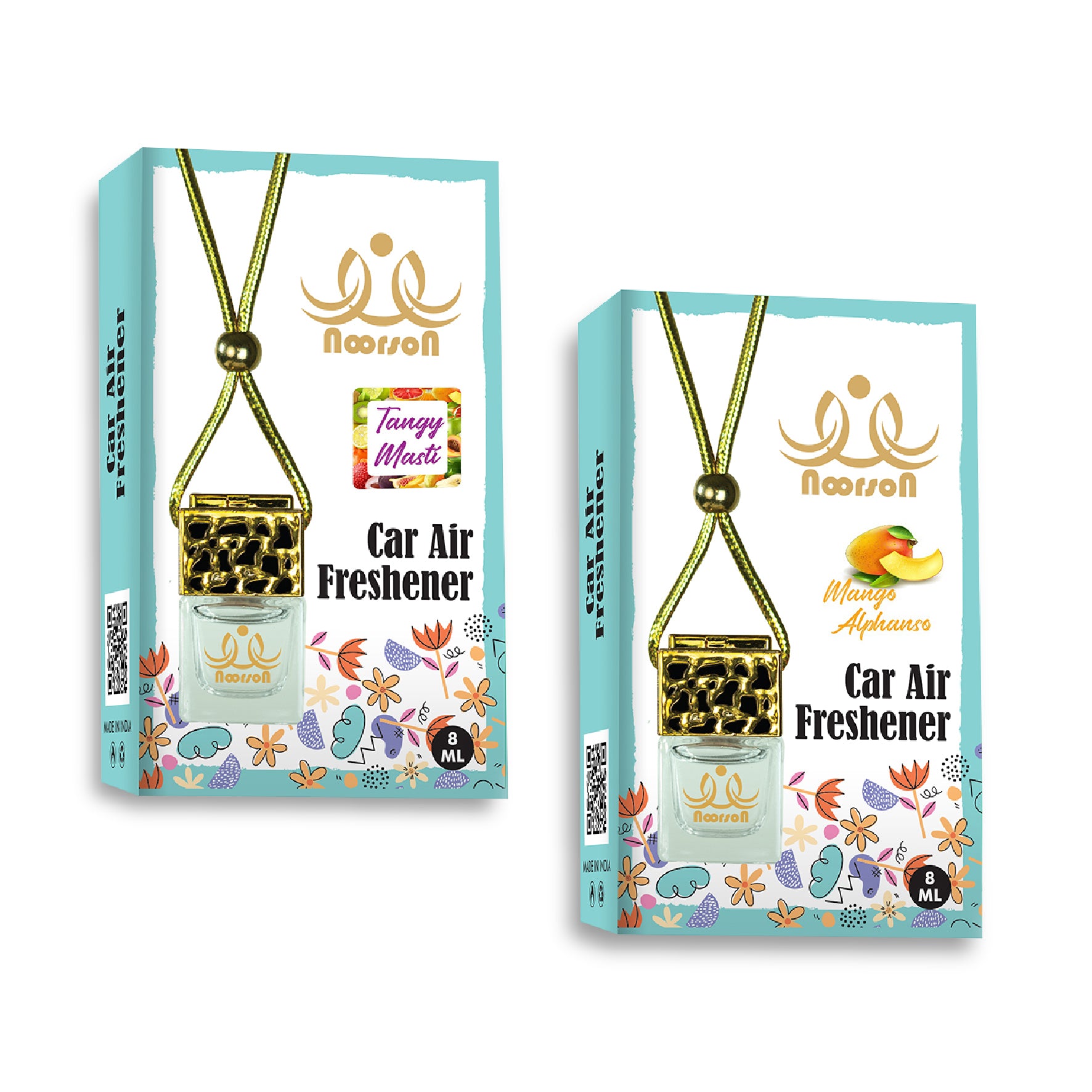 Noorson Tangy Masti Mango Alphanso Car Air Freshener Hanging with 100% Natural Essential Oils ( Pack Of 2 )